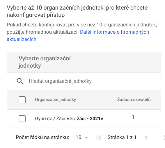 - Na obrázku výše vidíte, ze které organizační jednotky přišel požadavek na schválení aplikace a přístupu.