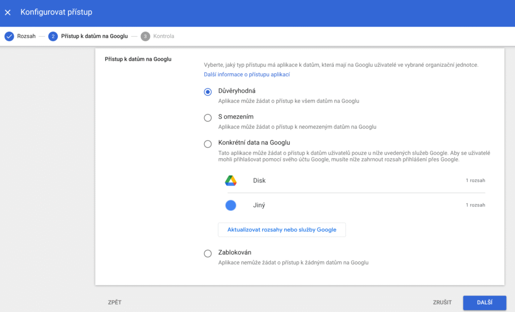 3. Nastavení přístupu u aplikací, které čekají na schválení