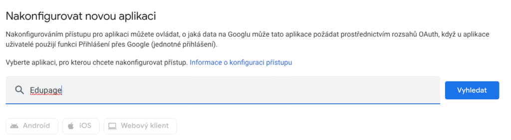 - Následně se vám zobrazí tabulka s výčtem všech aplikací, které jste již schválili a v liště se vám zobrazí tlačítko Nakonfigurovat novou aplikaci – klikněte na něj.
